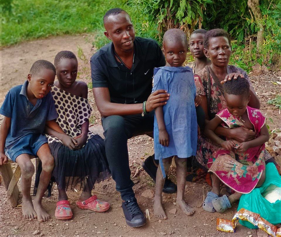 Kasaija Joshua one of the founders of Sapphire Foundation takes a picture with one of the families we reached out to